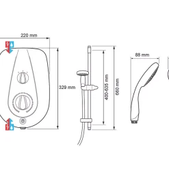 Contemporary electric shower with pressure stabilised temperature control to maintain showering temperature. Features separate power and temperature controls. Mira Clearscale technology reduces limescale for a better performing shower.