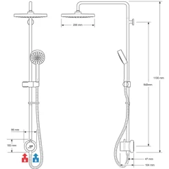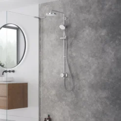 Compact, minimalist design saves space with a smaller footprint than traditional bar valve showers. Striking, simple, uncluttered aesthetic. Single control for on/off and temperature control. Magni-Flo technology boosts flow rate for high performance showering, even at low pressure, making it suitable for use with all systems and pressures. Divert between the deluge overhead and the handshower or have both on at once. Retrofits Mira Agile and Pronta showers.