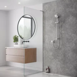 Compact, minimalist design saves space with a smaller footprint than traditional bar valve showers. Striking, simple, uncluttered aesthetic. Single control for on/off and temperature control. Magni-Flo technology boosts flow rate for high performance showering, even at low pressure, making it suitable for use with all systems and pressures. Retrofits Mira Agile and Pronta showers.