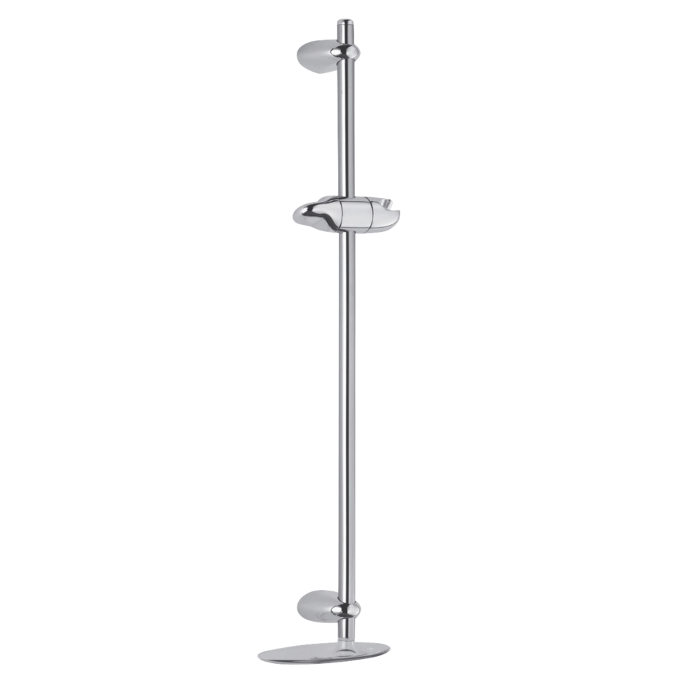 Soap dish with integrated hose-retaining ring / shower gel hook. Adjusts to fit existing screw holes.