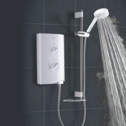 Easy to fit and use. Advanced pressure stabilised temperature control keeps your selected showering temperature consistent. Sensi-flo technology helps prevent scalding if the showerhead or hose become blocked. Clearscale cuts limescale by half for better shower performance. Opti-flo optimises flow throughout the year. Phased shutdown flushes hot water from the tank to make it safe for the next user.