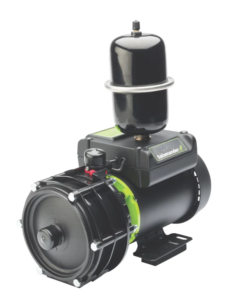 Positive and negative head. Smooth-running, universal single shower pump. Quietly and efficiently boosts hot and cold water supplies. Suitable for gravity-fed systems.