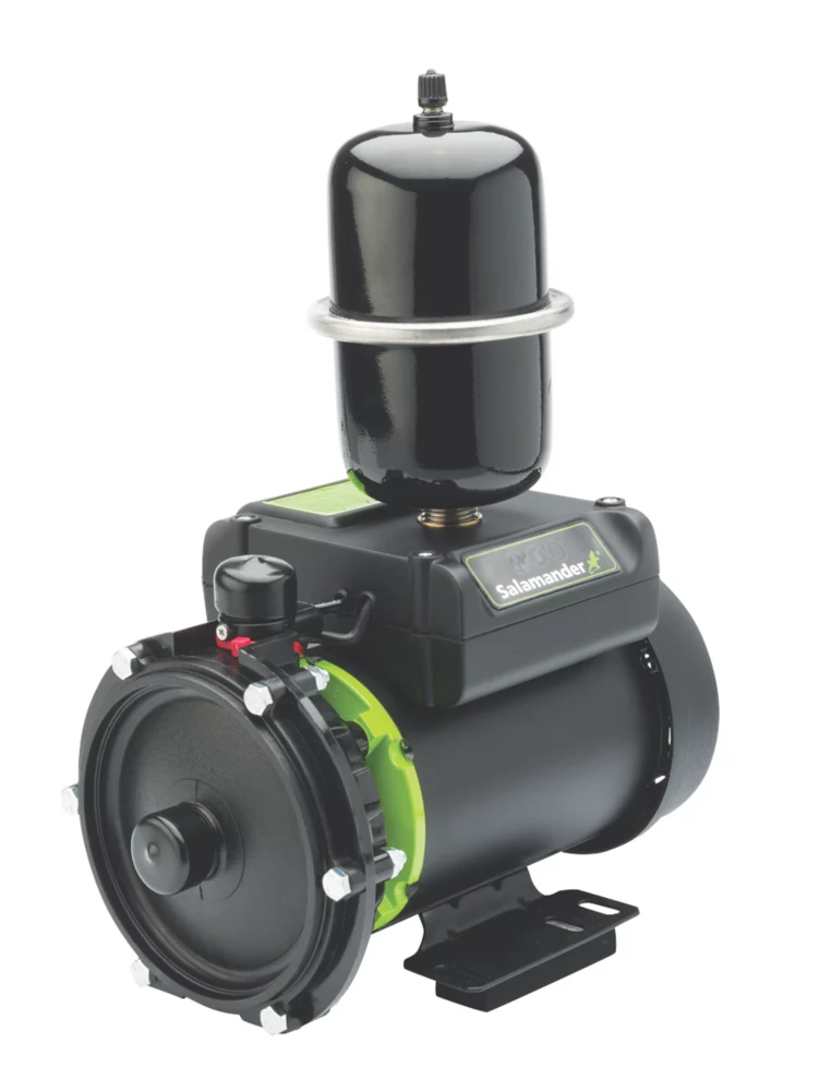Positive and negative head. Smooth-running, universal single shower pump. Quietly and efficiently boosts hot or cold water supplies. Suitable for gravity-fed systems.
