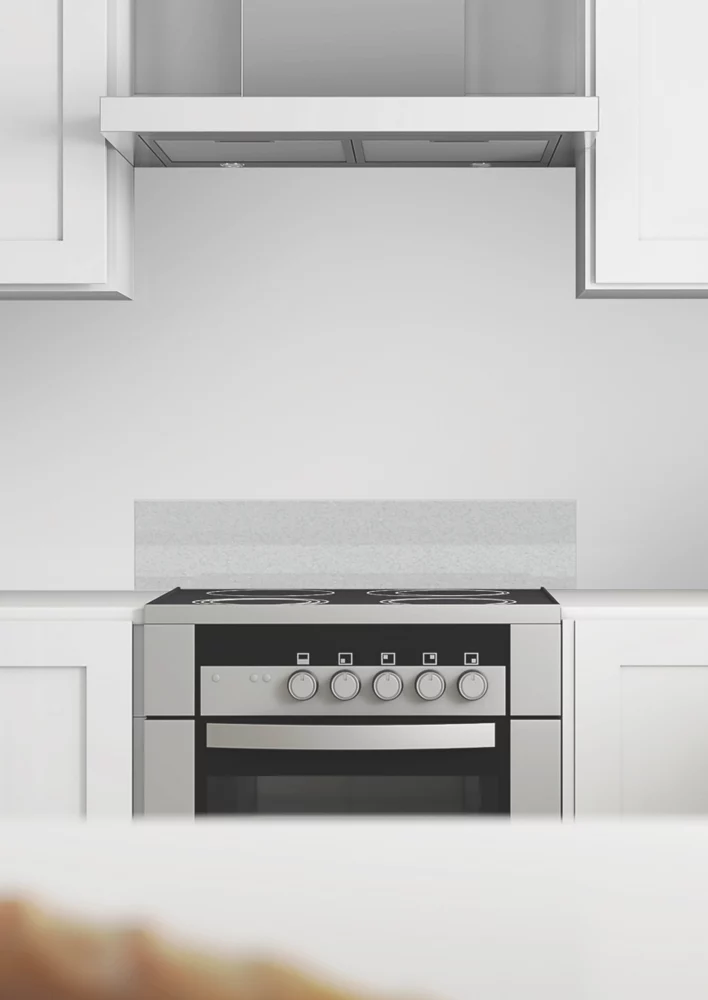 Great for protecting kitchen walls behind hobs or bathroom walls behind sinks. Colour matched to Splashwall acrylic panels. Made from glass and easy to clean. No grout required.