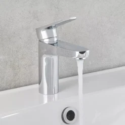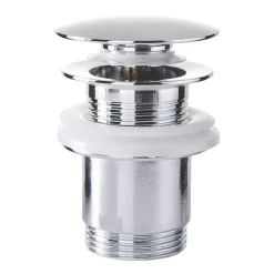 Brass body with silver finish. Modern design. Suitable for high and low pressure systems. Chrome-plated brass clicker waste included.