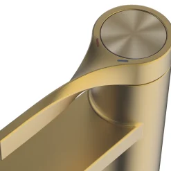 Thermostatic mixer with temperature stop button designed to prevent children and vulnerable family members from exposure to high temperatures.
