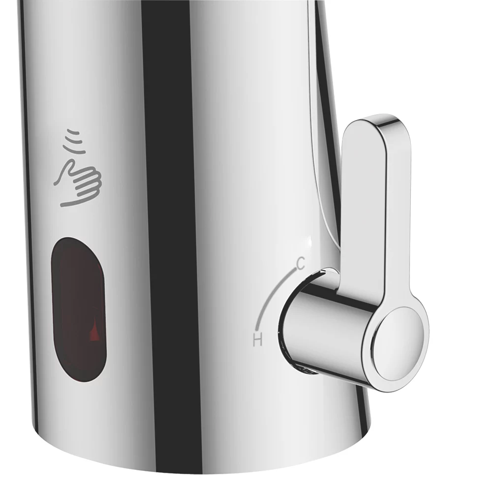 Contemporary style, touch-free basin mixer tap with chrome finish. Suitable for high pressure systems.