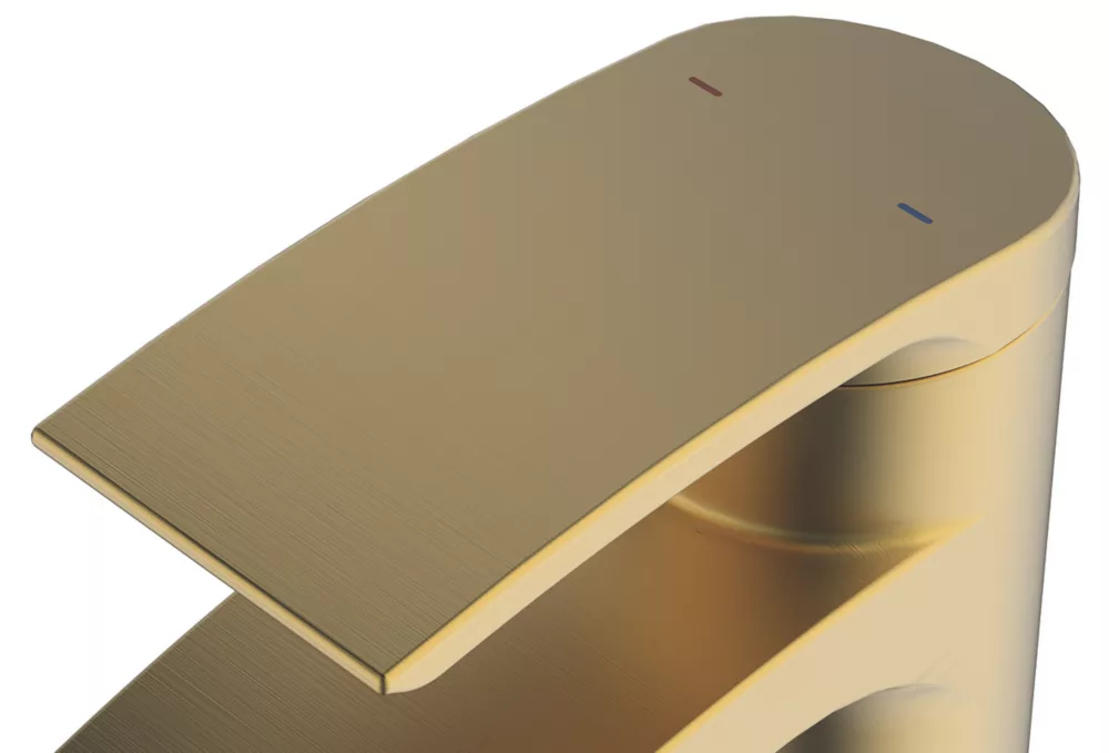 Stylish contemporary basin mono mixer features waterfall flow and solid brass body.