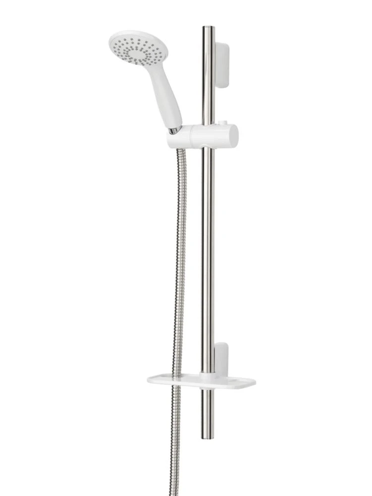 Contains shower head, shower hose and a matching riser rail. Fits most shower types. Suitable for high and low pressure systems.