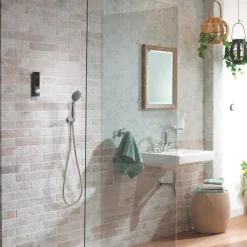 Suitable for combi and high pressure cylinders. Wireless shower control with 3 customisable pre-sets. Divert between a fixed head and handset or run both simultaneously. Full colour digital display showing temperature and flow settings.
