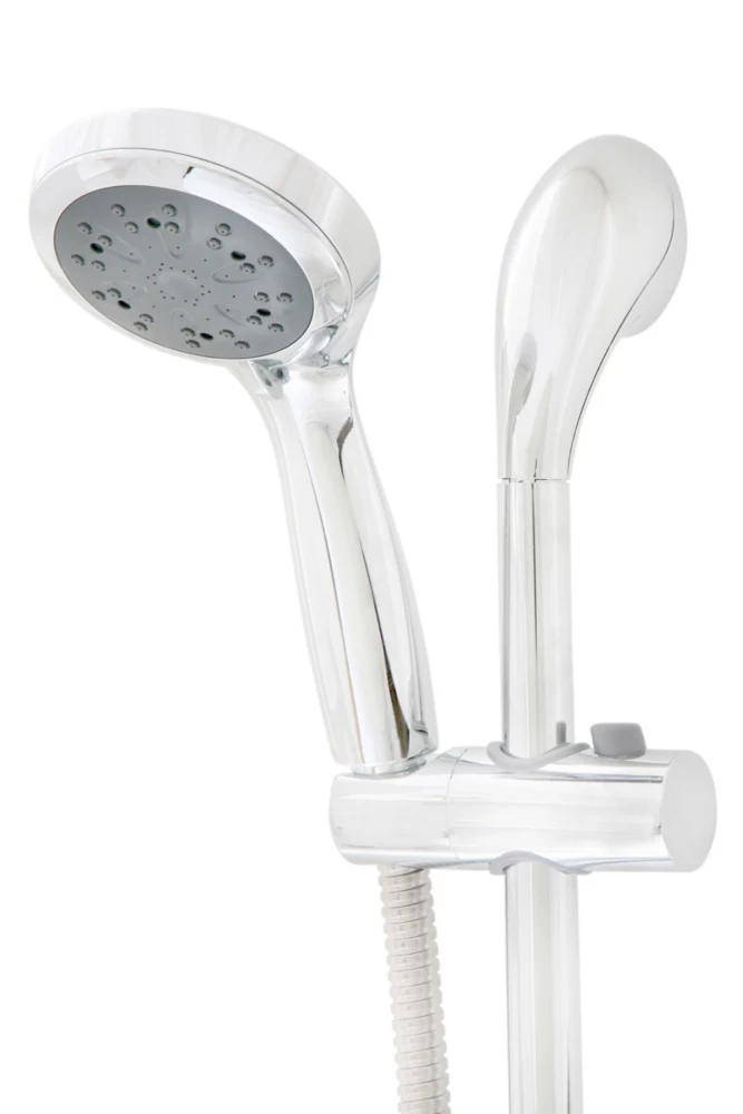 ABS, brass and stainless steel construction. Luxury shower kit with 1m hose. Suitable for all showers and plumbing types. Modern design.