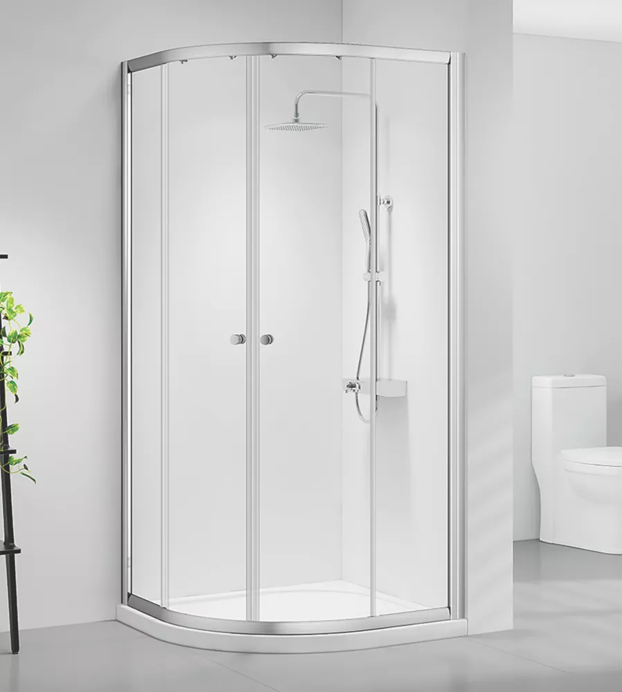 Framed quadrant sliding doors with easy clean glass coating an d quick release bottom rollers. Easy to fit with pre-assembled fixings and manufactured from 6mm toughened safety glass.