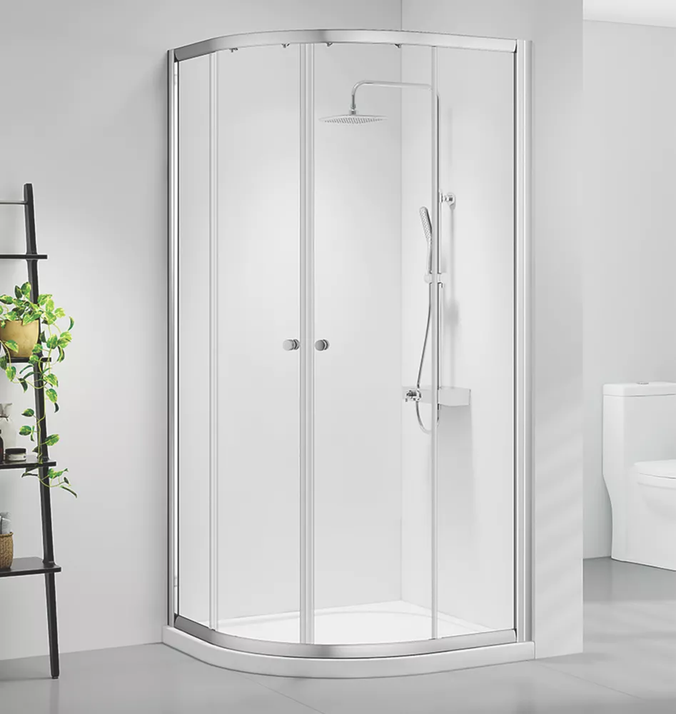 Framed quadrant sliding shower doors with easy clean glass coating and quick release bottom rollers. Easy to fit with pre-assembled fixings and manufactured from 6mm toughened safety glass.