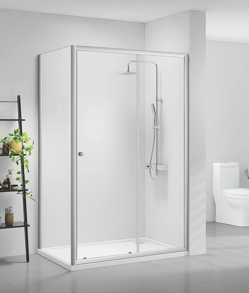 Framed sliding door shower enclosure with easy clean glass coating, pre-assembled fixings and quick release easy clean bottom rollers. Manufactured from 6mm toughened safety glass.