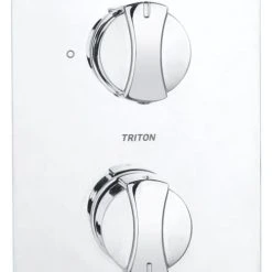 Stylish, thermostatic shower with separate flow and temperature controls. Offers choice between fixed overhead rainfall shower and handset. Maintains consistent, comfortable temperature.