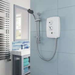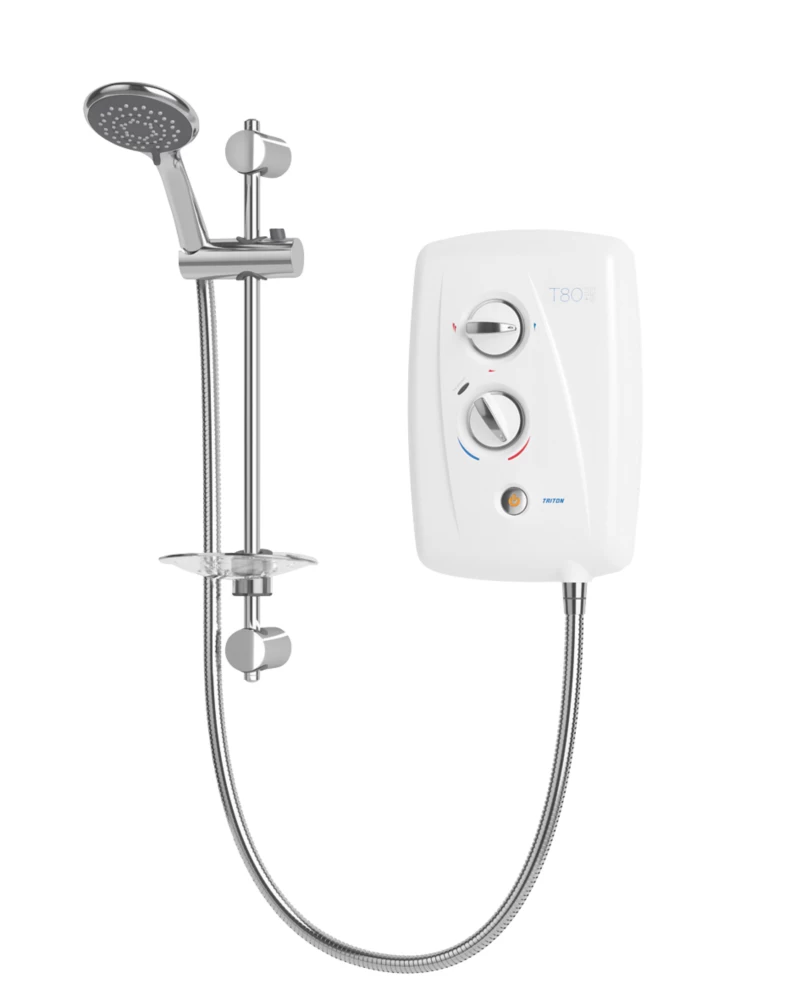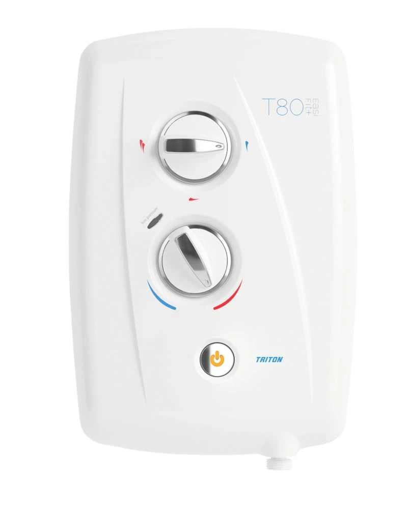 Dial power and temperature controls for ease of use. Supplied with an adjustable top bracket shower kit with a durable 1.25m anti-twist chrome shower hose. Swivel-fit connection allows for left and right-side water connection and swing-fit connectivity provides left and right-side cable connection with generous footprint for replacement installations. Plus Entry trims can easily be removed and fitted without tools.
