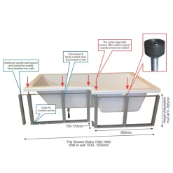 Strong, galvanised bath front frame kit that is quick and efficient to install. Will fit 1500, 1600, 1700, and 1800mm L-shaped shower baths. Ideal for tiling. Can be used in conjunction with end frame (Code 6630X).