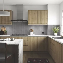 Laminate breakfast bar with white marble effect finish. Post-form front edge with under edge glue seal for water resistance against drips and spills. Additional edging strip included.